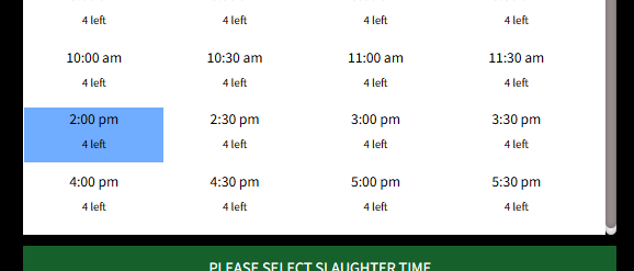NO PRESELECTING OF ANIMALS ALLOWED PRIOR TO YOUR APPOINTMENT TIME ON EID DAY